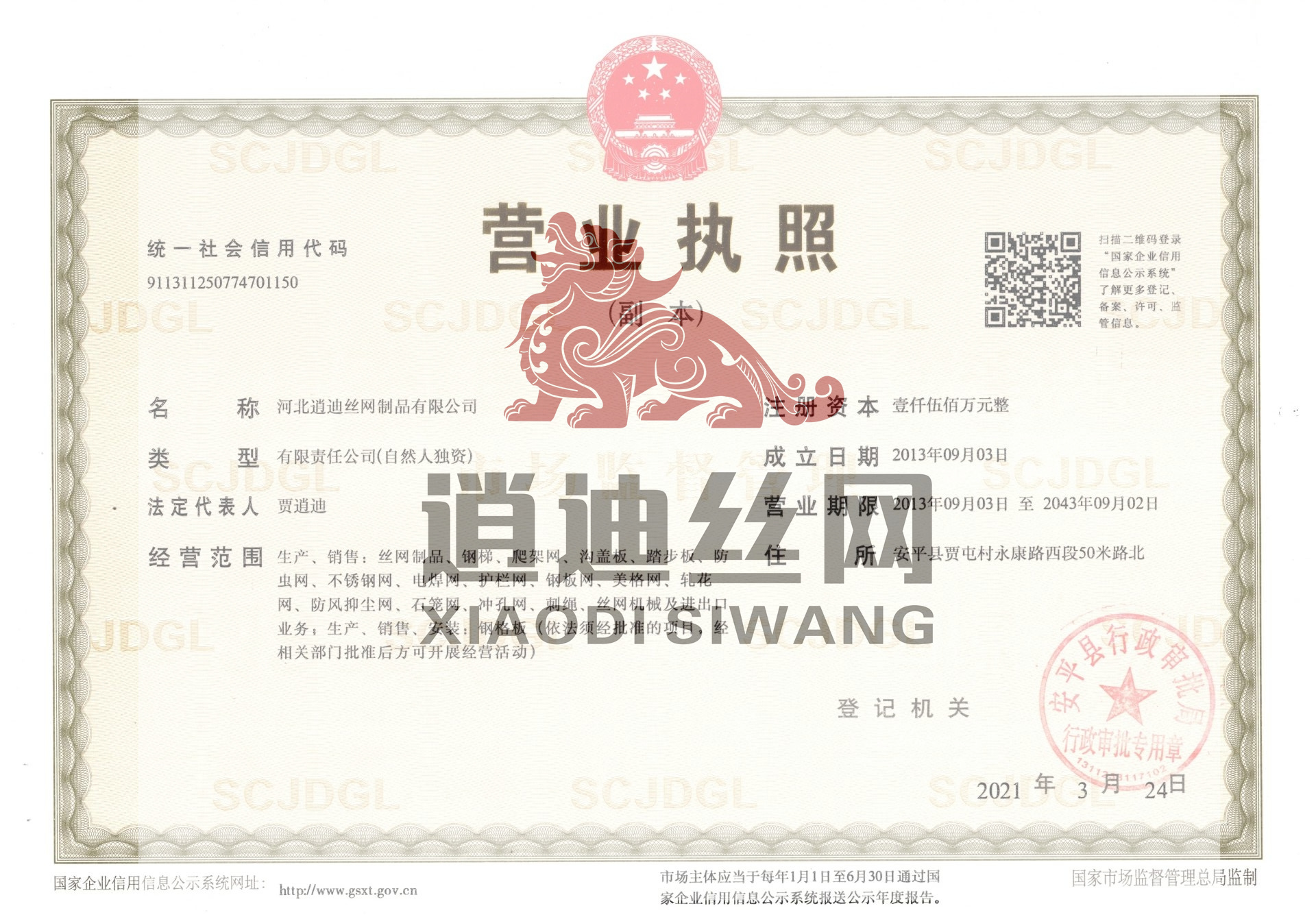河北逍迪絲網(wǎng)制品有限公司誠信天下,誠信是我們公司一個(gè)原則問題不可撼動(dòng)的,以心中有誠信的思想結(jié)交五湖四海的朋友,能達(dá)到雙贏是最好的,我們堅(jiān)信朋友多了路好走,我們公司都是老朋友多,我們一直是這樣做的。河北逍迪絲網(wǎng)制品有限公司成立于2013年注冊資本壹仟伍佰萬整,主要生產(chǎn)沖孔網(wǎng),鋼格板,金屬防蟲網(wǎng),如實(shí)的實(shí)體廠家,是一家-研發(fā)-銷售-生產(chǎn)-安裝-售后一條龍公司,2019年通過了ISO 9001認(rèn)證管理體系符合GB/T 19001-2016/ISO 9001:2015標(biāo)準(zhǔn),同時(shí)通過了SGS認(rèn)證,擁有商標(biāo)版權(quán)2品牌,擁有一個(gè)著作版權(quán),河北逍迪絲網(wǎng)制品有限公司位于中國有名的(絲網(wǎng)之鄉(xiāng))安平縣,于天津,北京,雄安,石家莊相鄰,交通非常發(fā)達(dá),出口可以選擇天津港口非常近每天都有接貨送貨往返車輛,空運(yùn)可以選擇石家莊正定機(jī)場,附近也有鐵路運(yùn)輸,當(dāng)?shù)剡€有兩個(gè)生態(tài)物流園區(qū)發(fā)往全國各地,我們沖孔網(wǎng)工廠生產(chǎn)設(shè)備有:普通沖壓機(jī),高速?zèng)_壓機(jī),自主研發(fā)小微孔沖壓機(jī),龍門沖,磚塔沖孔,重型沖孔機(jī),萬瓦級(jí)別激光切割機(jī),3000W激光切割機(jī),焊接設(shè)備,折彎機(jī),校平機(jī),剪板機(jī),精密校平機(jī),(對(duì)板面平整度要求苛刻的客戶群體0.5-0.2誤差)我們公司銷售市場沒有局限性國內(nèi)國外都供應(yīng),擁有出口權(quán)...